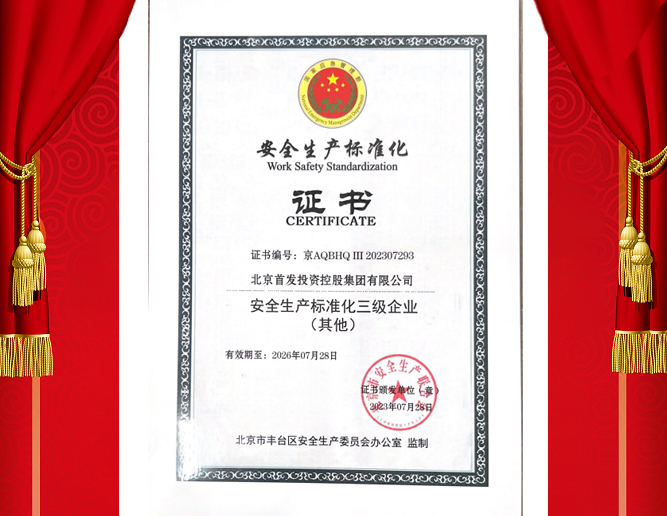 (物業資産部 李堅)近日,首發(fā)投資集團順利通過(guò)豐台區應急局的安全考評驗收,榮獲“安全生産标準化三級企業”證書,标志著(zhe)公司安全管理工作邁上标準化、規範化的新台階。