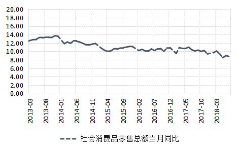 圖9 我國(guó)社會(huì)消費品零售總額當月同比(%)