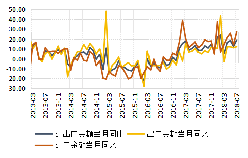圖10 我國(guó)進(jìn)出口金額當月同比(%)