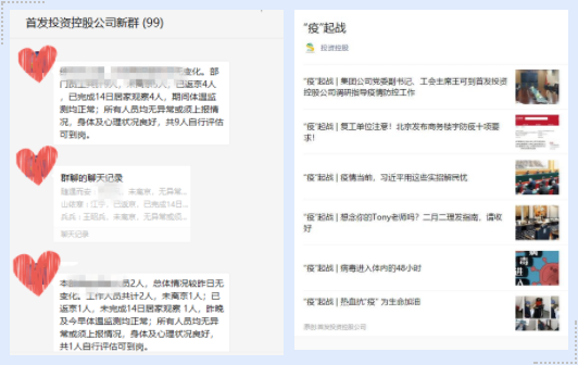 公司堅持實施“零報告”制度,以微信工作群爲平台,每日報送個人疫情防控安全情況,層層密織全面(miàn)覆蓋、确保第一時(shí)間掌握每名員工身體狀況;同時(shí),通過(guò)公司微信群、微信公衆号下發(fā)上級和公司通知,開(kāi)設“疫”起(qǐ)戰專欄,轉發(fā)官方科普文章,加強對(duì)全體員工的正面(miàn)宣傳引導,切實提高複工複産後(hòu)對(duì)疫情防控的敏感性,開(kāi)展系列職工心理防疫工作,提供有針對(duì)性的疏導、咨詢等服務。