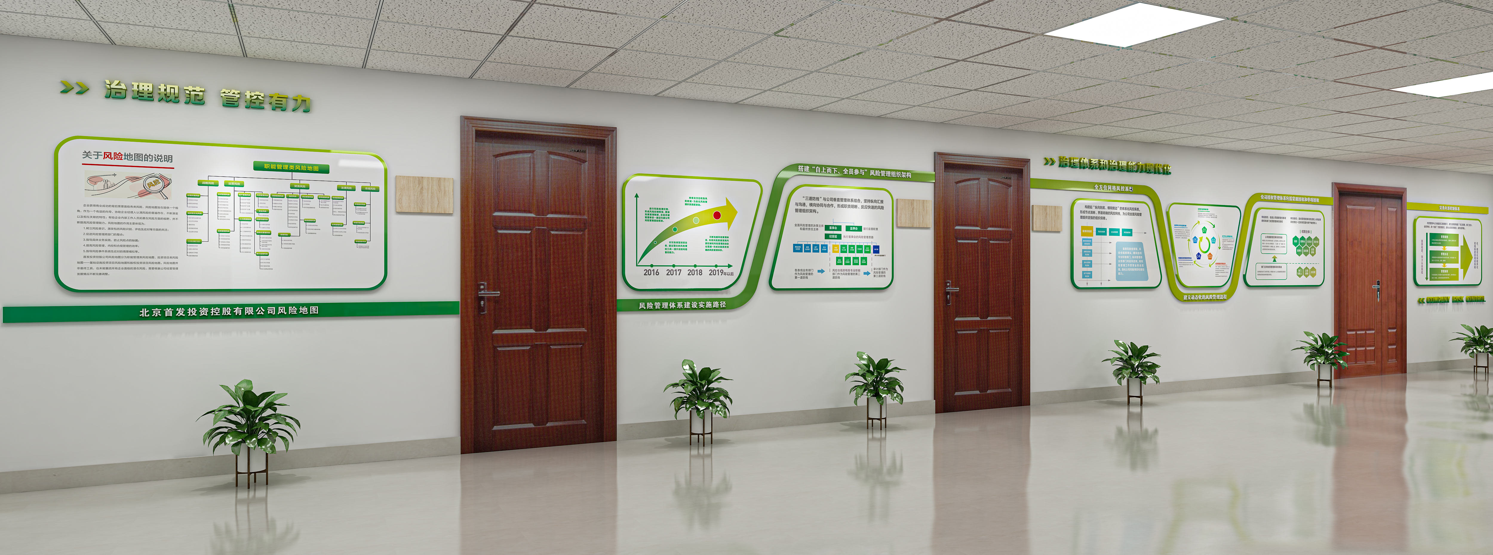 企業文化長(cháng)廊以“百年首發(fā) 投心緻遠”爲主題,内容涵蓋了公司簡介、發(fā)展曆程、“4+2”業務體系、成(chéng)果展示、風險管控、文化理念、光榮榜、黨建園地、形勢任務教育、廉潔文化牆、安全文化牆等幾大闆塊,從不同角度展示了公司的核心業務和文化理念。打造成(chéng)爲對(duì)外宣傳公司文化、樹立首發(fā)投資形象的重要展示窗口和文化陣地,使員工在潛移默化中了解、支持、參與、融入企業文化創建工作。