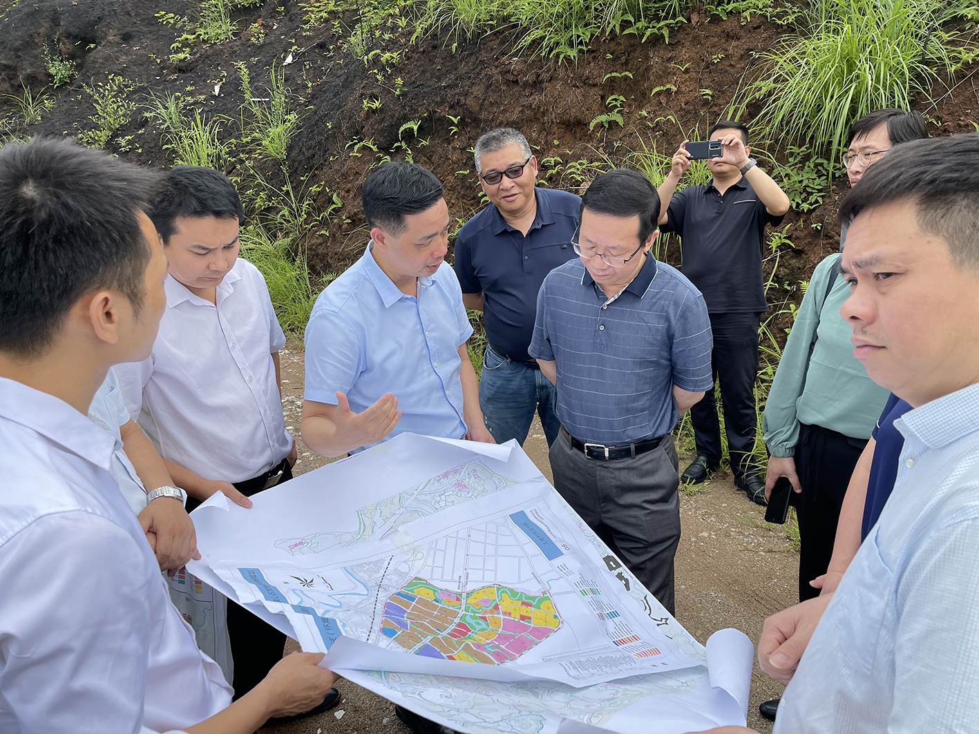 懷集縣副縣長(cháng)梁文海、文紅妹與楊立董事(shì)長(cháng)一行實地考察了廣佛肇(懷集)經(jīng)濟合作區B區、現代物流園規劃地塊、綠色農副産品交易博覽中心、綠色農副産品檢測中心等地。
